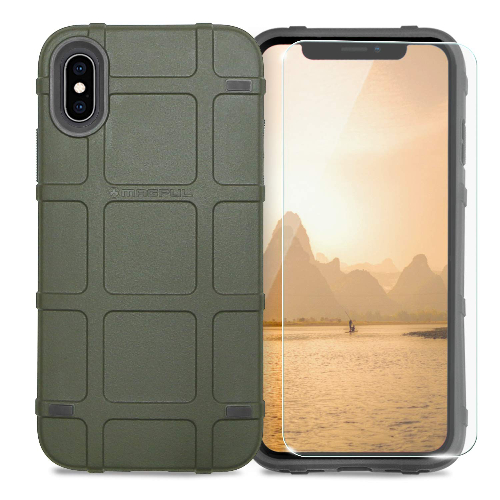 Phone Case Compatible with Apple iPhone X/iPhone Xs 5.8" inch, with [Tempered Glass Screen Protector] Magpul Industries Bump MAG1094-ODG Polymer Cover Retail Packaging (Olive Drab Green)