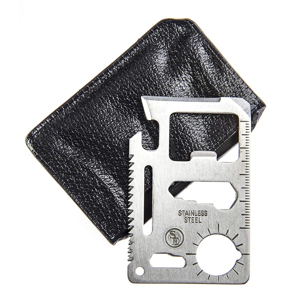 This knife and multi-tool is a great way to have all your essential tools on hand without taking up too much room in your wallet or pocket. Made from high-quality stainless steel, this sleek little card will not bend nor break during use! It also features an easy-grip handle so that you can accessorize with ease when needed most-- perfect for everyday tasks like cutting boxes at home before moving into another apartment complex where utilities may be turned off by default.