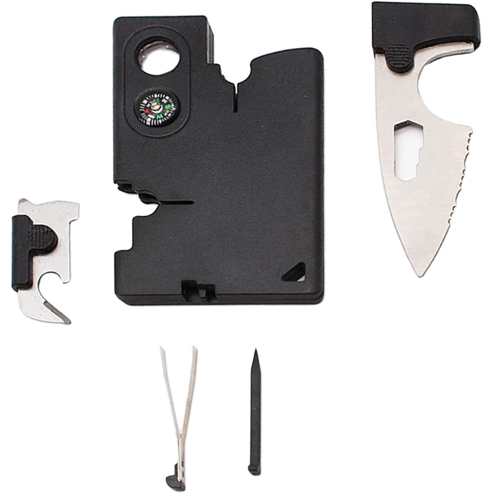 Tactical Credit Card Tool Companion with Lens/Compass CC1SB - 9 Tools, Black, 2" Blade, 10-in-1 multi-function portable tool card