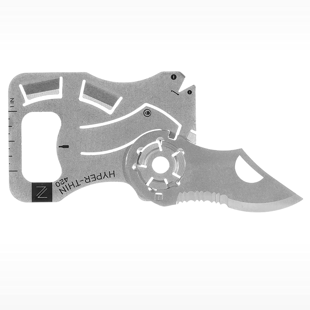The Hyper Thin Wallet Knife is made of just two pieces, so there are no weak points. This means it can be stored conveniently in your wallet or billfold without worrying about breaking off and costing you money! It fits easily into most everyday tasks with its removable blade that comes equipped to fix nearly anything - day after day.