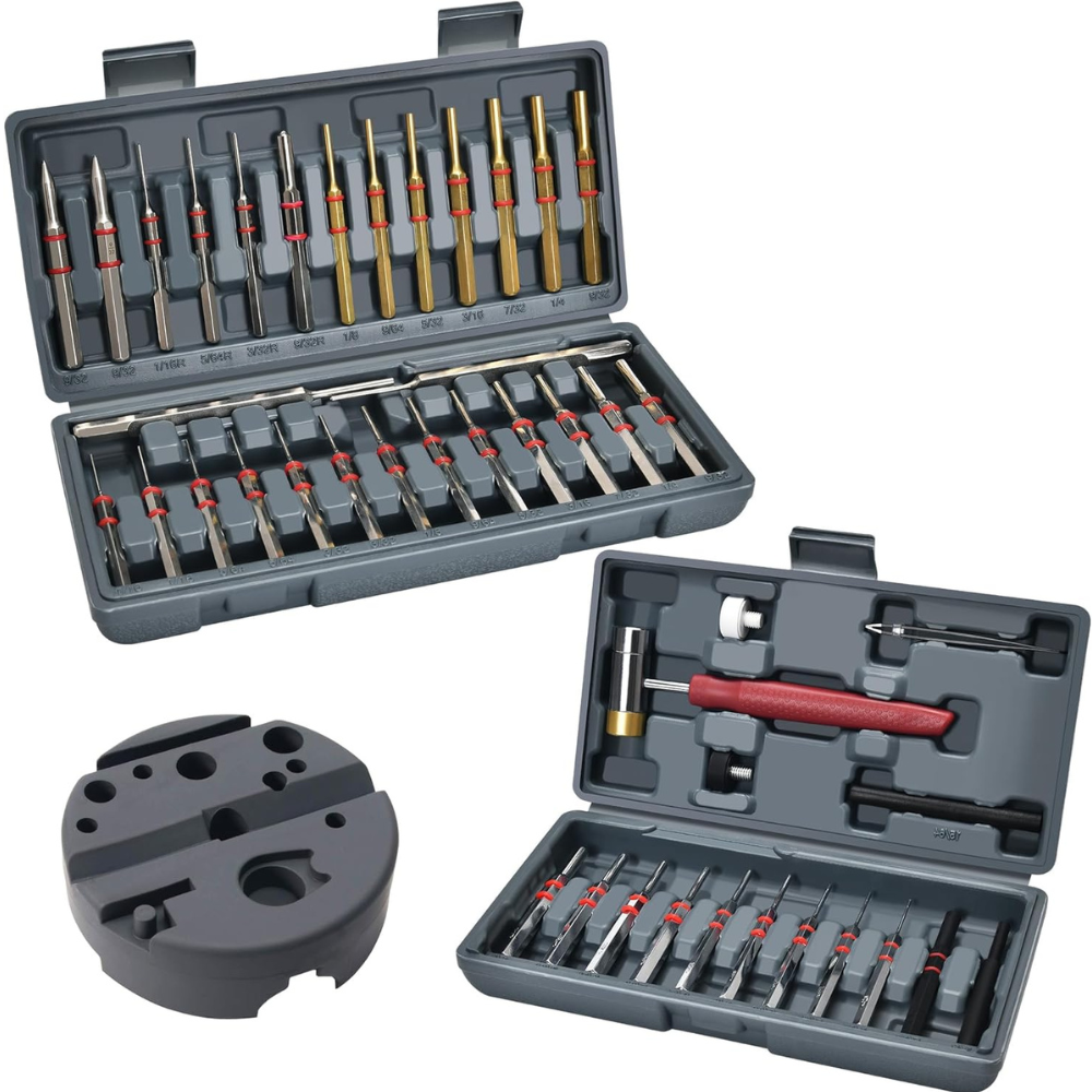 Pin Punch Set, 40PCS Steel and Brass, Mechanical Repair Tool with Hammer, Bench Block