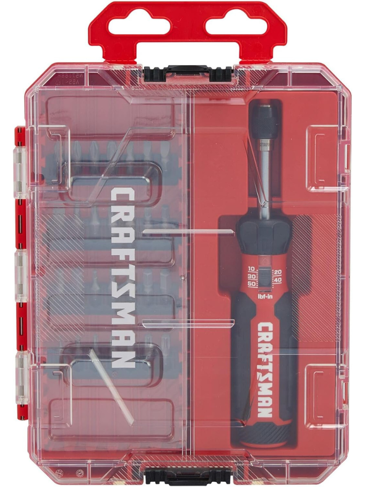 CRAFTSMAN Torque Screwdriver Set with Storage, 1" Phillips, Slotted, Hex, Torx and Square Screwdriving Bits, 29 Piece (CMHT68130)