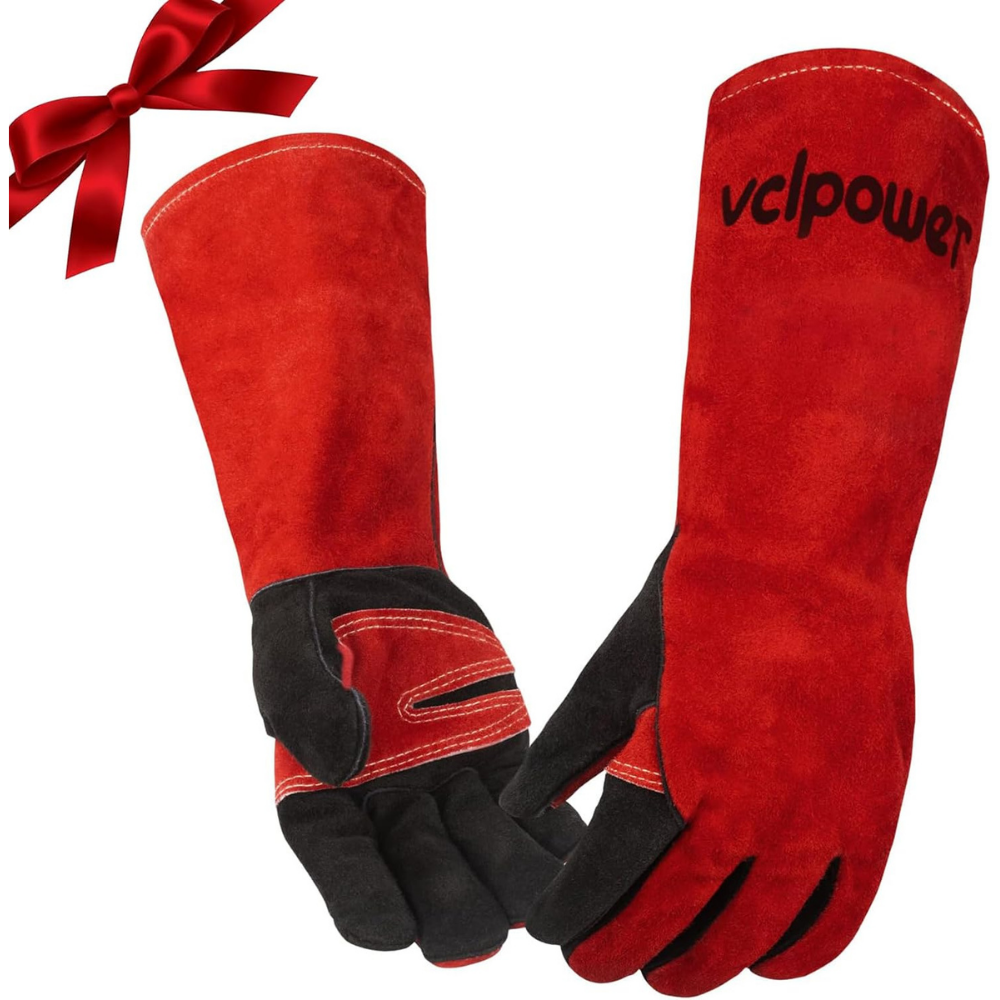 Vclpower Fireplace Welding Gloves Fire Heat Resistant16IN 932°F Fireproof Leather for Fire Pit Wood Stove Campfire Furnace BBQ Baking, Grill Oven Stick Mig Tig Gear