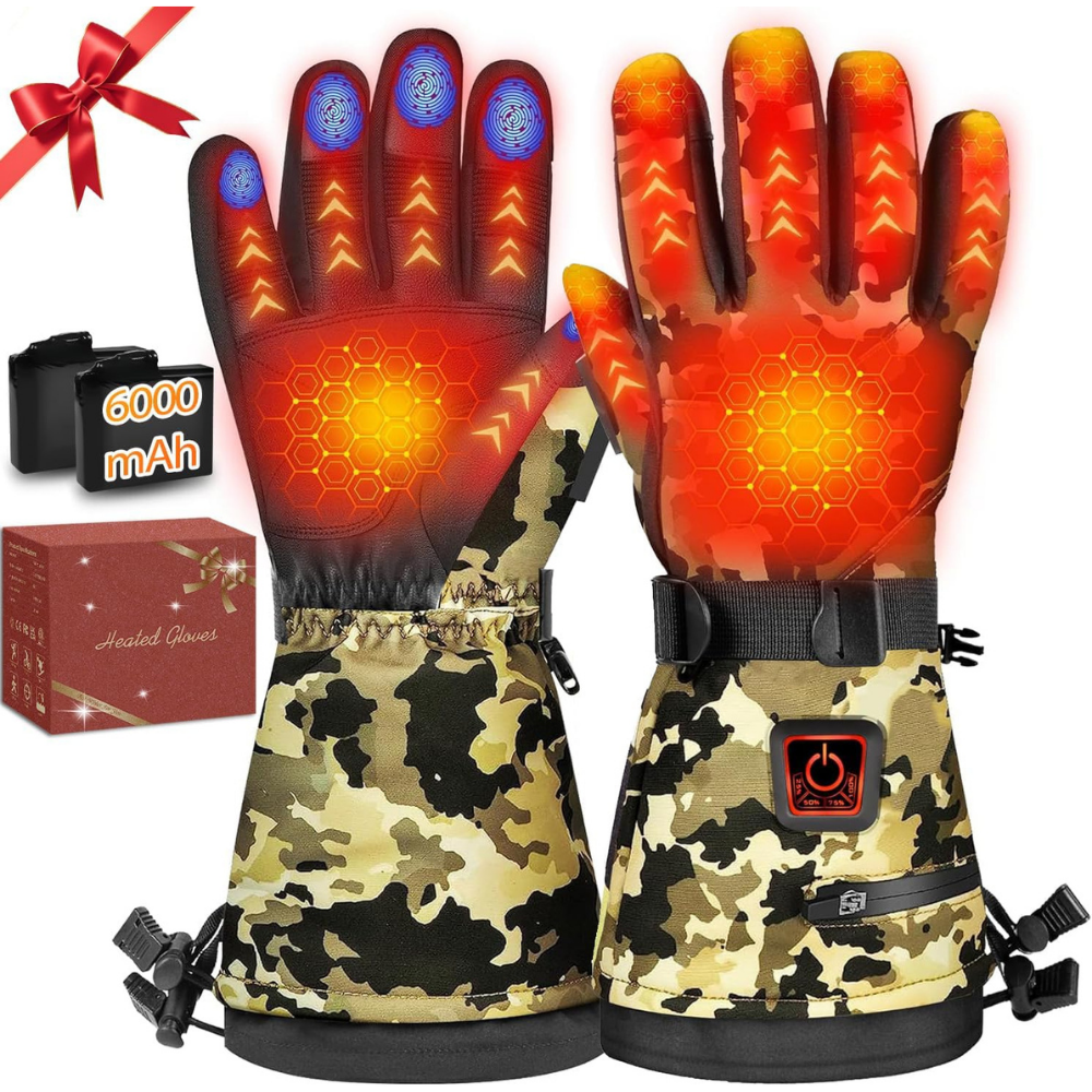 Heated Gloves, 7.4V 22.2WH Winter Gloves Upgraded Rechargeable Battery, Waterproof & Windproof Electric Heated Glove, Camo Glove for Camping, Fishing, Hunting, and Motorcycle