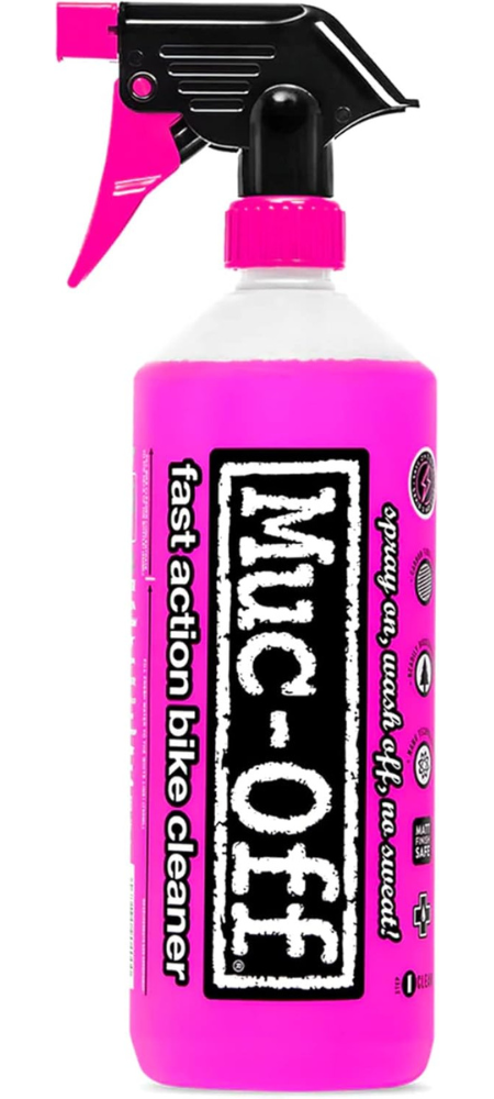 - SAFE ON ALL SURFACES: Muc-Off’s signature pink bike cleaning spray is fully biodegradable and free from acids, solvents, and CFCs. It’s safe for use on carbon fibre, anodised metal, seals, cables, brake pads, rotors, and all other bike components—without compromising performance or the planet.