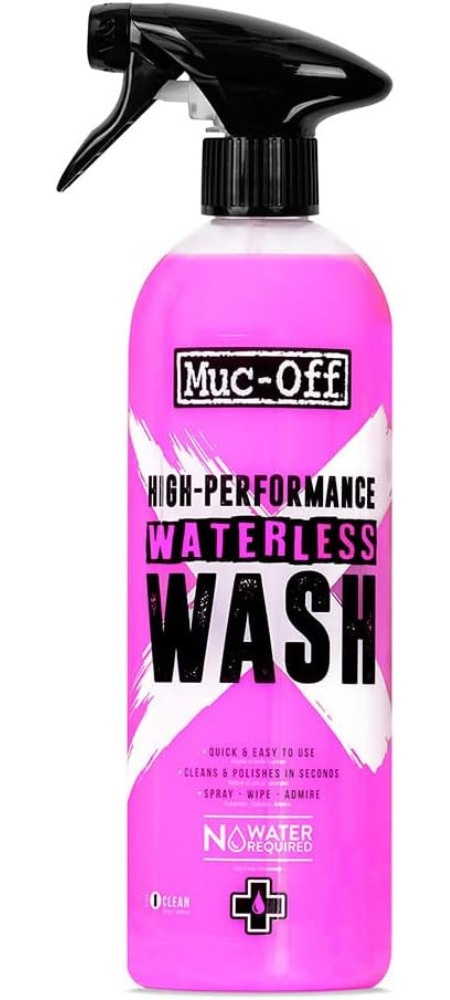 - NO WATER? NO PROBLEM: Muc-Off High Performance Waterless Wash is the perfect dry bike cleaner. Whether a water supply is out of reach or you simply don’t have time, Waterless Wash is perfect for removing light contaminants between washes.