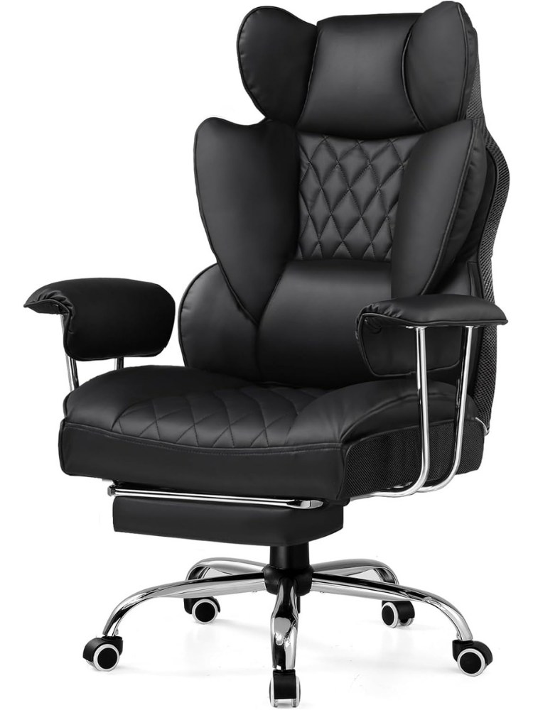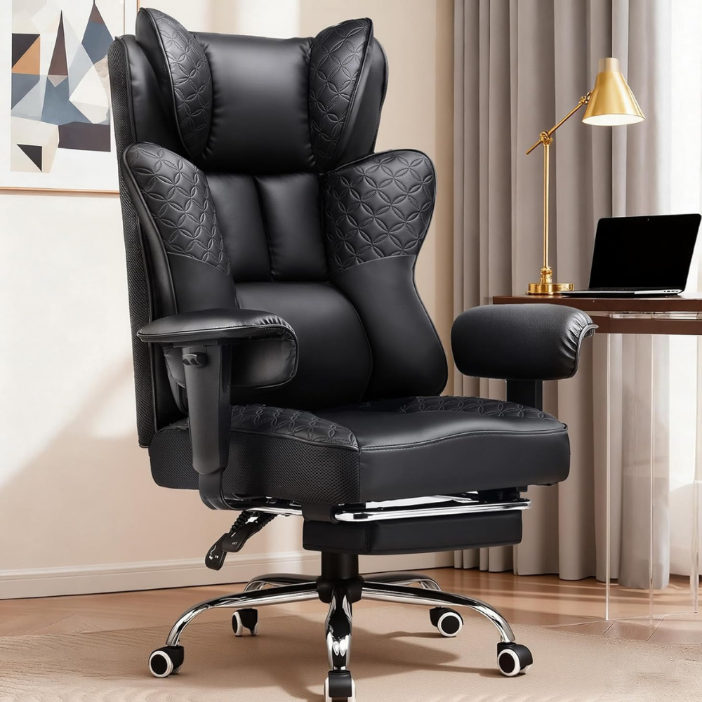 - [Sofa-Like Seating] This executive chair features pocket spring lumbar support, maintaining elasticity and breathability for long hours of sitting. The widened seat has no restrictive side wings, while the wraparound wing-back design provides a cozy, hugged feeling. With an adjustable footrest, you can sit comfortably in any position—just like relaxing on your own sofa