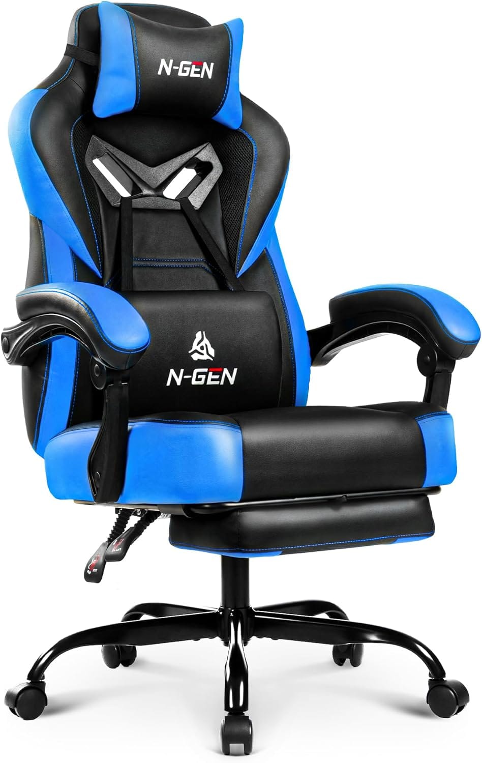 N-GEN GAMING Video Gaming Chair Big and Tall Office Computer Desk Chairs with Ergonomic Lumbar Support High Back Recliner and Footrest for Adults (Blue)