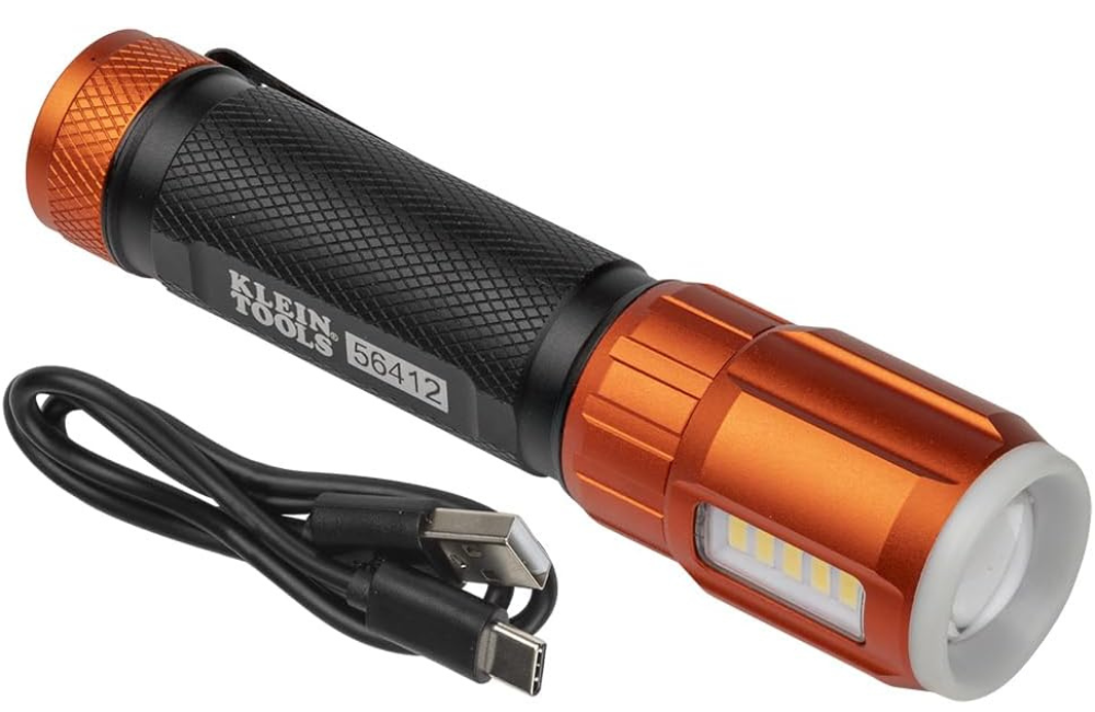 Klein Tools 56412 Rechargeable LED Flashlight with Flood Light, 500 lumens, USB-C Rechargeable, Pocket Clip, Magnet, for Professional Work
