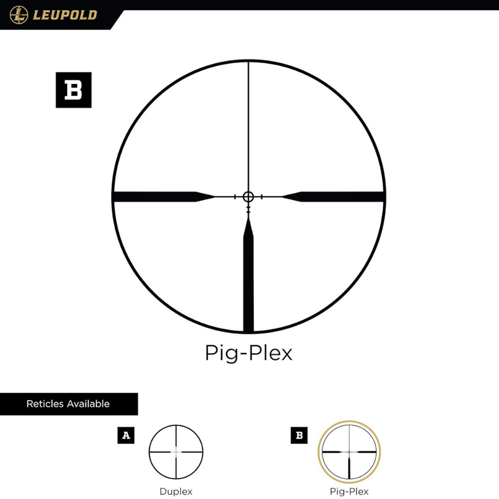 The Pig-Plex reticle was designed specifically with hog hunters in mind. The bold ring makes it easy to track and center moving animals.