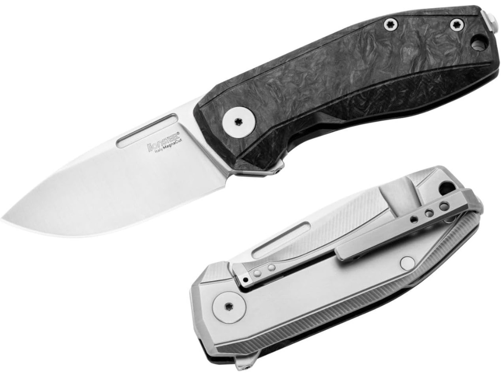 LionSteel NANO Titanium Frame Lock Folding Pocket Knife, Magnacut Steel Blade, Solid Handle Construction, Drop Point, Made in Italy (Carbon Fiber)