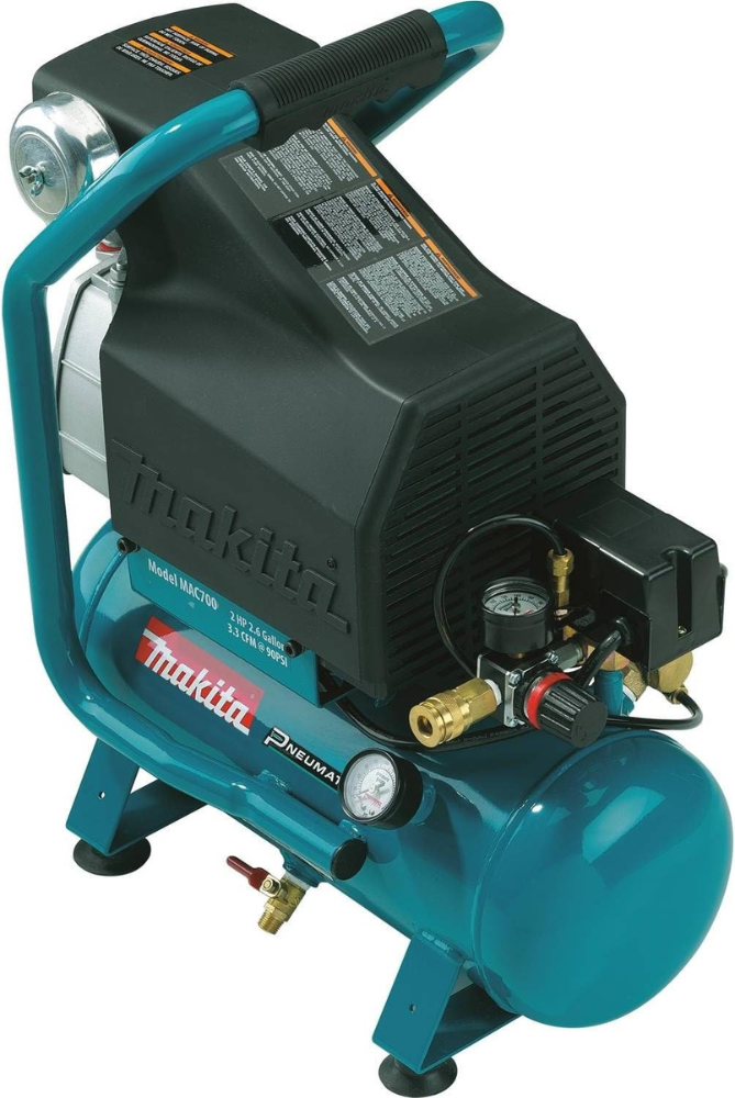 Makita Air Compressors are reliable and versatile tools that are widely used on job sites and in workshops. They are renowned for their quick recovery time, low noise levels, extended tool lifespan, and consistent performance. Among them, the Makita 1 HP, 2 Gallon, Oil-Free, Electric Air Compressor (MAC210Q) stands out with its innovative Quiet Series Design, which combines exceptional performance with reduced noise emissions. Operating at a mere 60 dB, it is perfect for indoor applications such as case and base installation, trim and finish carpentry, cabinet or furniture making, and more.