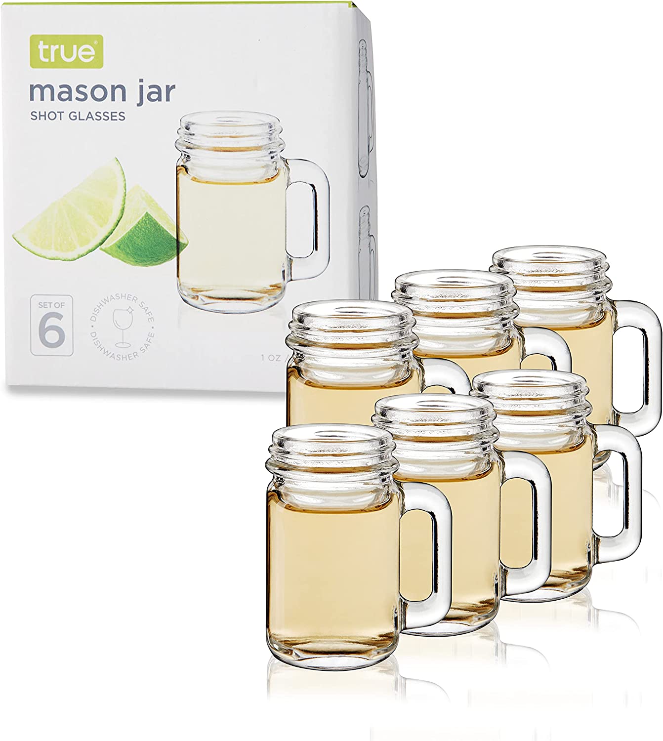 True Mason Jar Shot Glasses, Mini Mason Jar Shot Glasses with Handle, 1 Ounce Shot Glass, Set of 6, Glass 6 Count (Pack of 1) Mason Jar Shot Glass