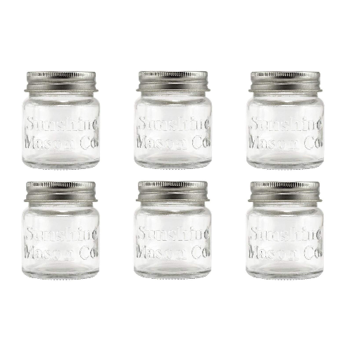 Sunshine Mason Co. Mini Mason Jar Shot Glasses with Metal Lid 2 Ounces, 6 Pieces