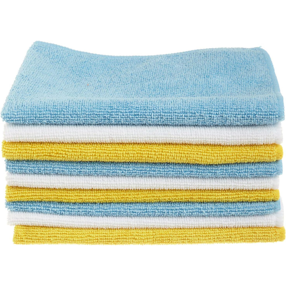 Amazon Basics Microfiber Cleaning Cloths, Non-Abrasive, Reusable and Washable, Pack of 24, Blue/White/Yellow, 16" x 12"