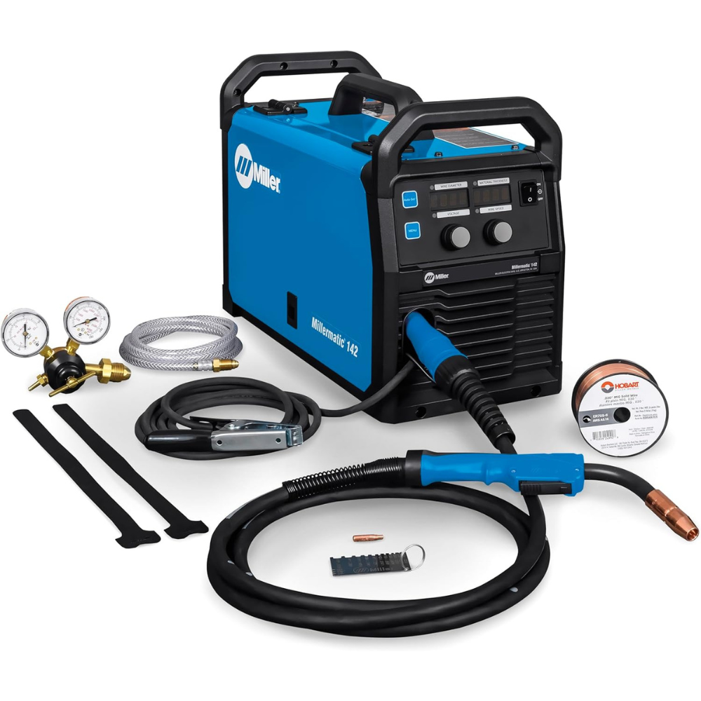 The Millermatic 142 enables you to achieve the professional-quality MIG welds characteristic of a Miller machine, even if welding is not a daily activity. Adjusting the parameters is quick and straightforward. Additionally, it is easily portable, features an extended duty cycle, and can operate on generator power.