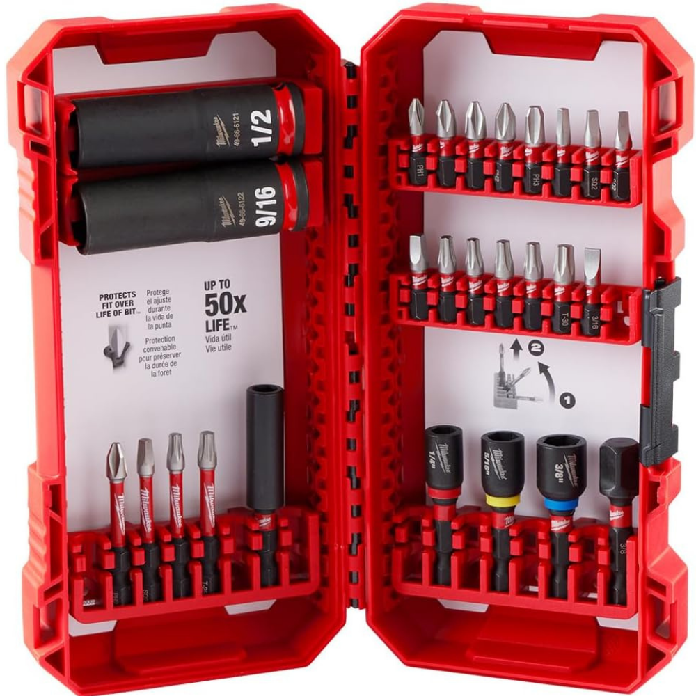 - Bits that pair with Milwaukee impact drivers/drills: Milwaukee bit sets are designed for quick swaps, secure fit, and fewer stripped heads when you’re driving screws all day.