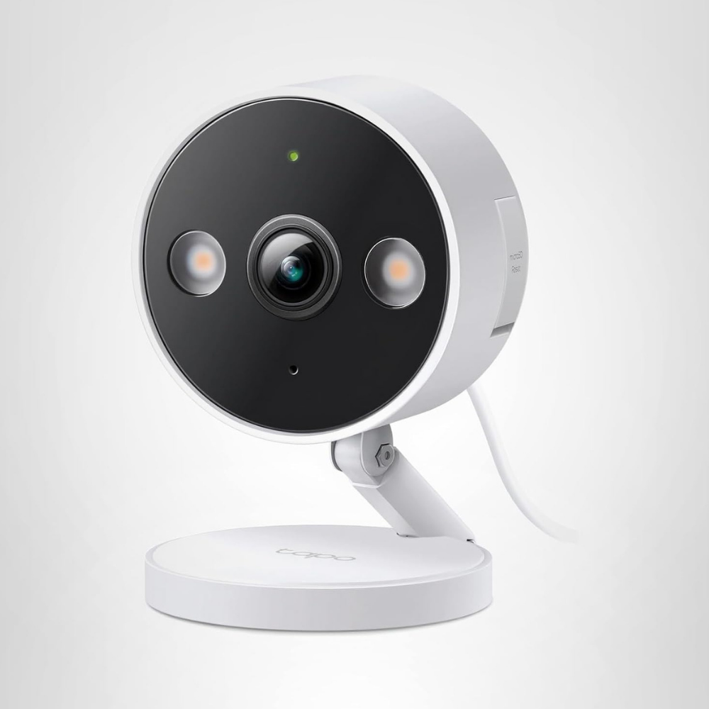 Tapo 2K QHD Security Camera Indoor/Outdoor, 2024 PCMag Editor's Choice, Color Night Vision, Free Person/Pet/Vehicle Detection, Baby Monitor, Local/Cloud Storage, IP66, Dual-Spotlight, Plug-in(C120)