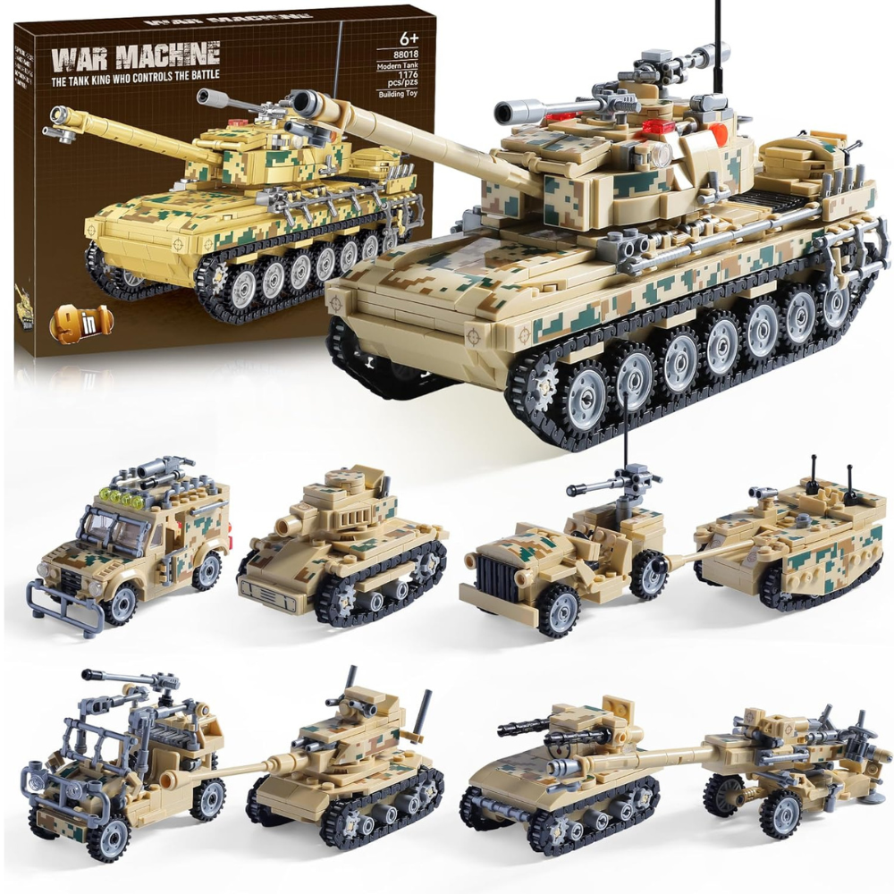 MISTBUY 1176-Piece Military Tank Building Blocks Set Compatible with Lego, Create A Large Army Tank or 8 Sets of Military Models, Great Army Toys Gifts for Boys Kids Age 6+ Year Old