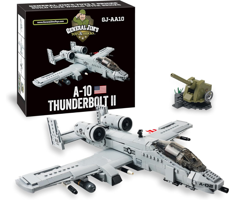 General Jim's A-10 Thunderbolt II Warthog Fighter Jet Building Blocks Set 931 Pieces Cold War Attack Aircraft Model Plane with Opening Cockpit Retractable Landing Gear Artillery Station | GJ-AA10
