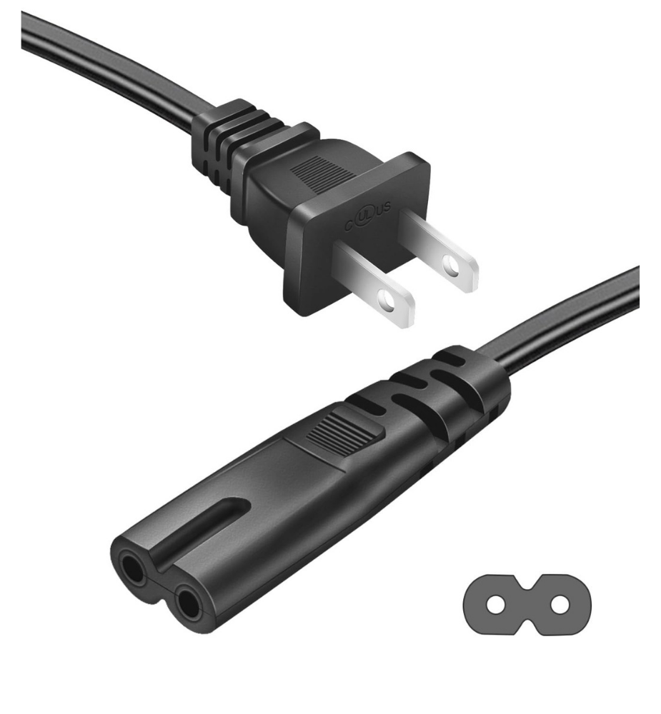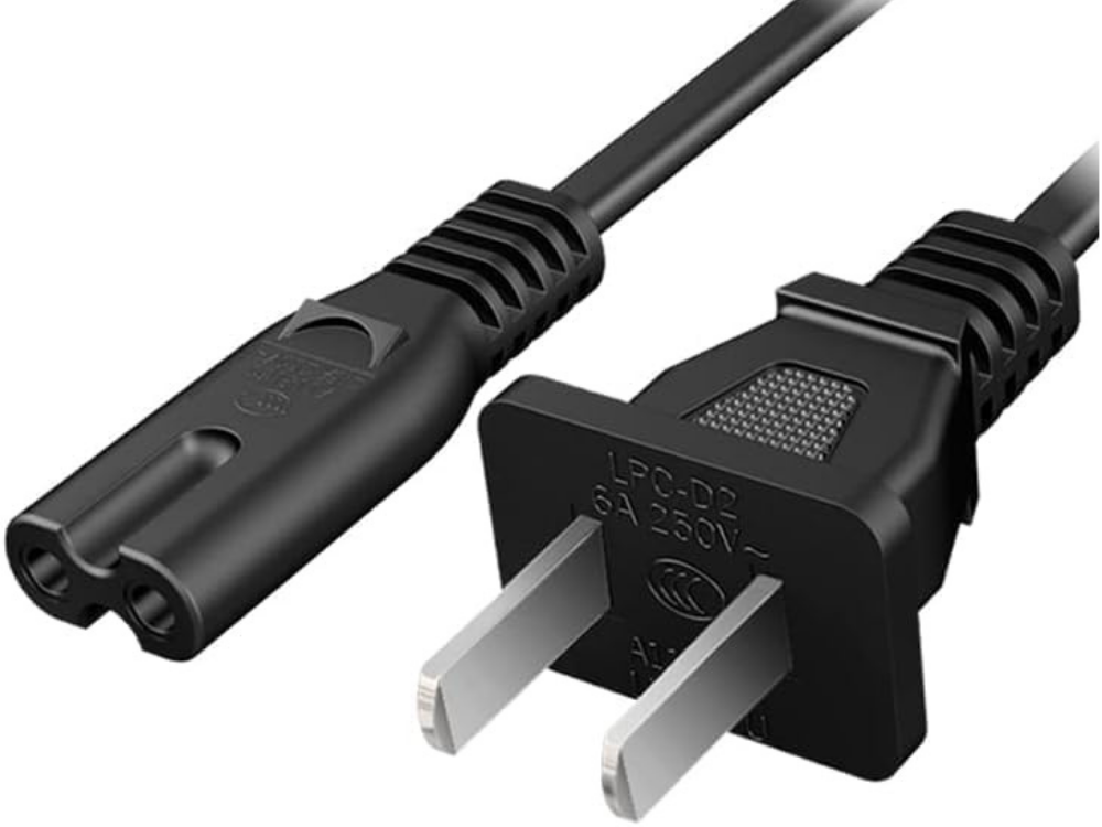 - Power Cord Type: Non-Polarized 2-Prong Figure 8 Power Cord (IEC 60320 C7 to NEMA 1-15P), 18 AWG, 125V, 10A.
