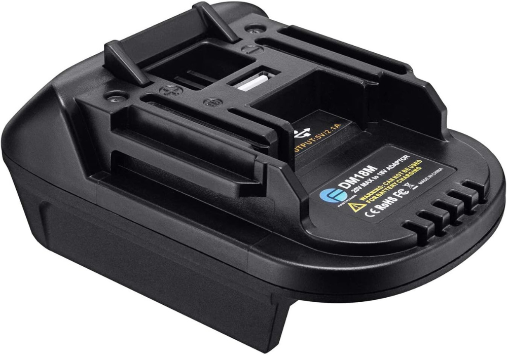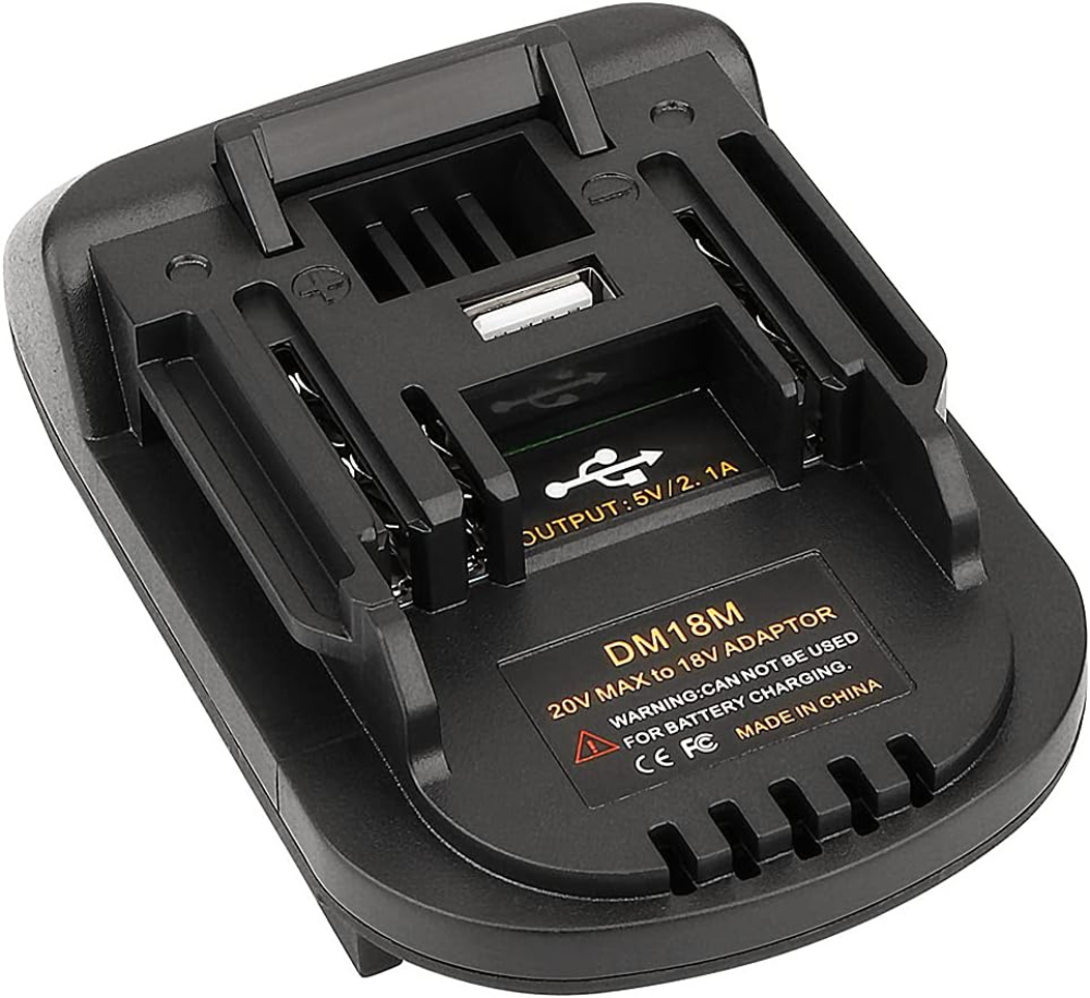 DM18M Battery Adapter with USB Charging Socket for Dewalt 20V & Milwaukee 18V M18 Lithium Battery Convert to Makita 18V Battery