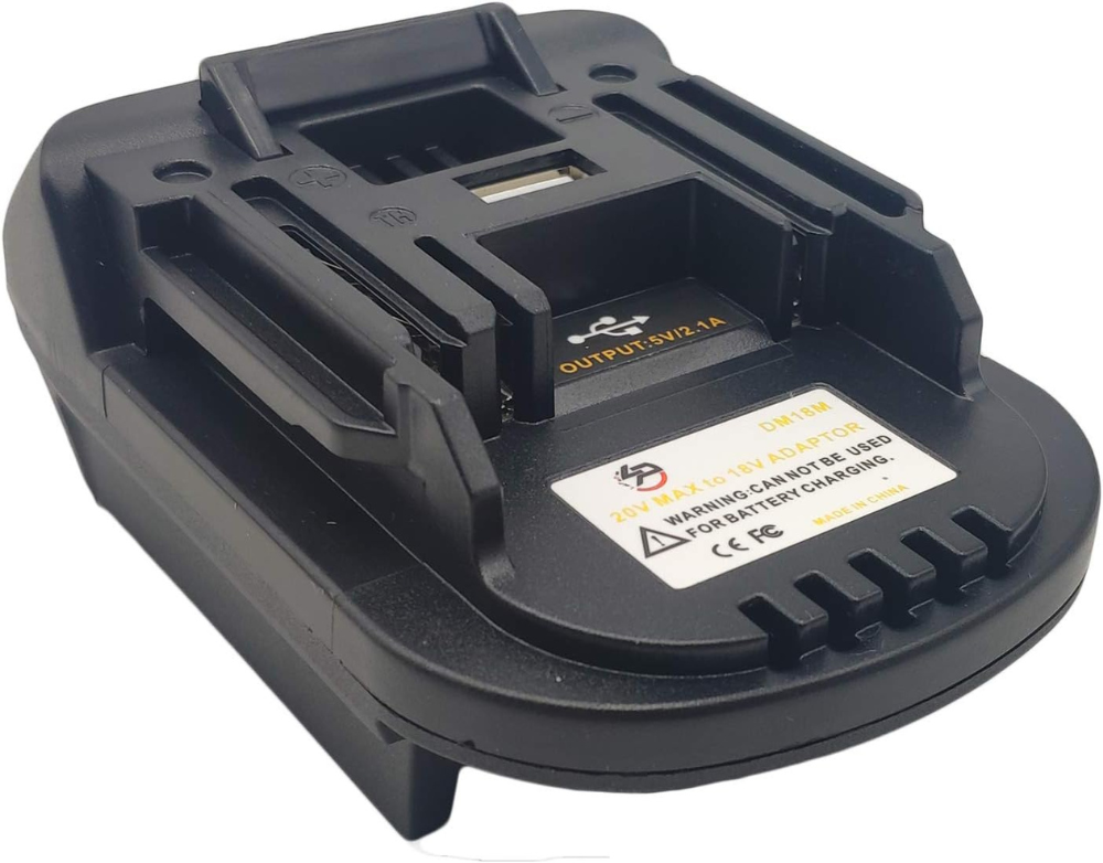 Featuring a USB socket (output: 5V, 2.1A), our adapter allows you to conveniently charge your smartphone, camera, and other electronic devices anytime and anywhere (USB cable not included). Its durable and safe design ensures long-lasting and reliable use. Shop now for this versatile and essential power tool accessory!