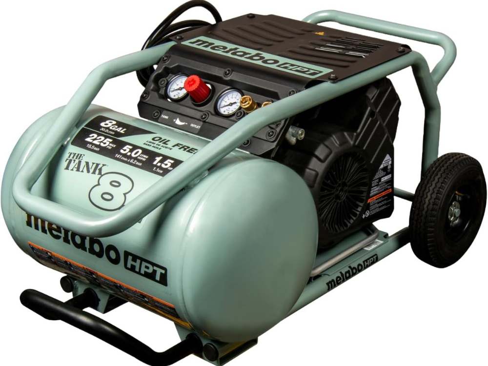 Metabo HPT Air Compressor, THE TANK™ 8-Gal, 225 PSI, 5 CFM @ 90 PSI, Trolley, Oil-Free, EC1315S Gray