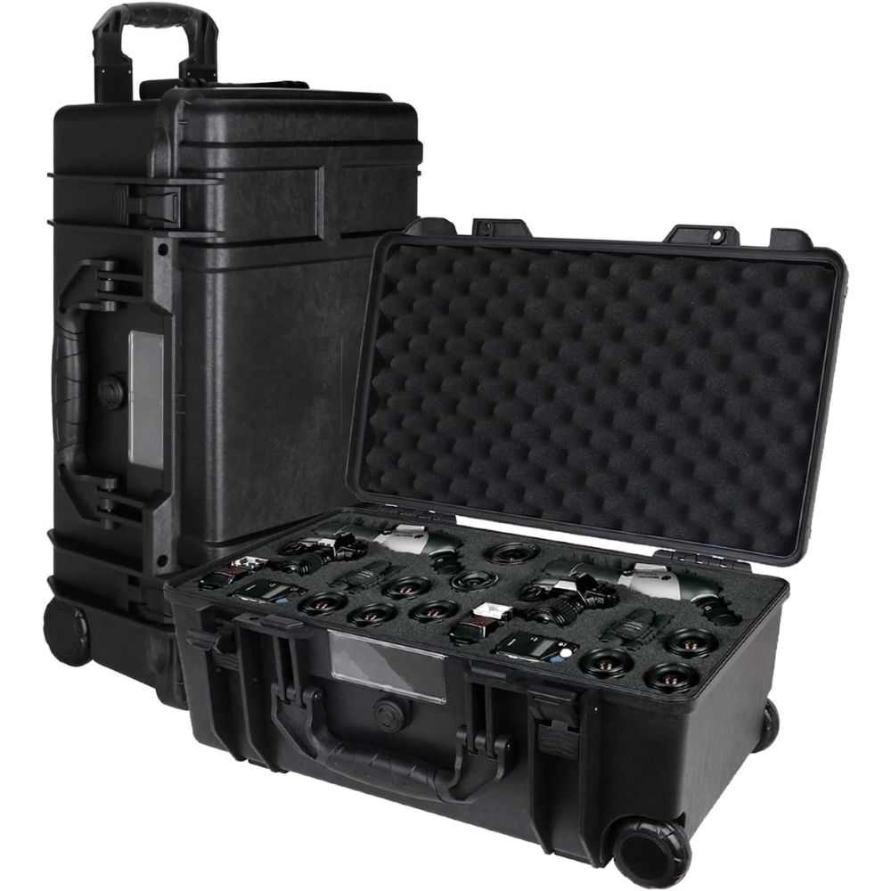 Prothens Camera Hard Case Dry Box With Foam & Stretchable Handle With Wheels, Gun Safe for Handgun, Equipment, Pistol, Large Waterproof Case