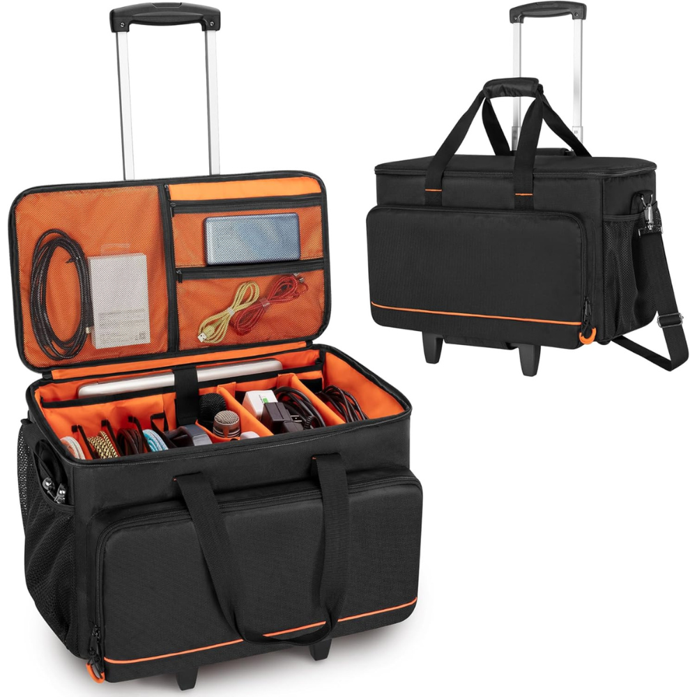 Trunab Rolling DJ Cable File Bag with Hard Padded Bottom, Detachable Dividers and Dolly, Travel Gig Bag for Professional DJ Gear, Musical Instrument and Accessories