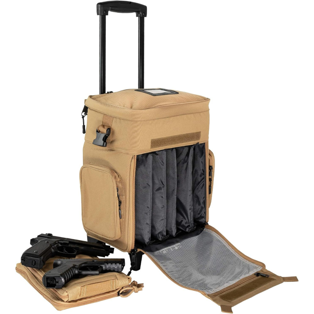 A range bag with wheels is a smart investment for any shooter who values efficiency, organization, and mobility. If you're tired of lugging around multiple cases or making several trips to your vehicle, this rolling range bag will seriously upgrade your range day experience. Order today!