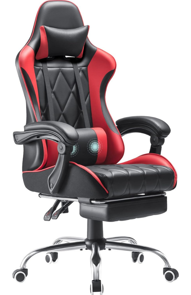 Homall Gaming Chair, Computer Chair with Footrest and Massage Lumbar Support, Ergonomic High Back Video Game Chair with Swivel Seat and Headrest (Red)