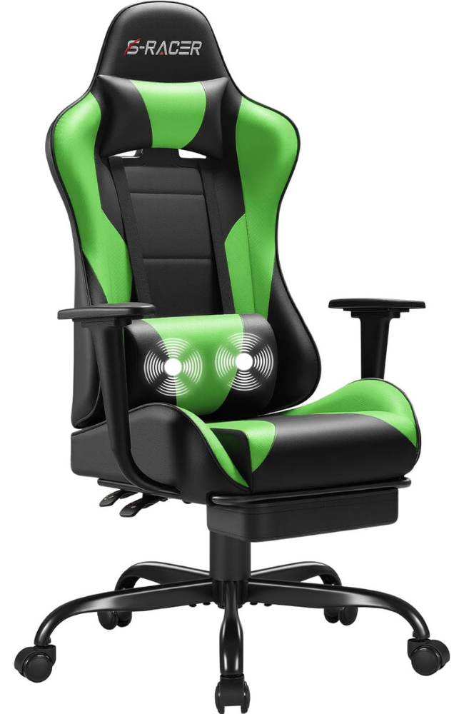 S Racing Gaming Chairs, Computer Chair with Footrest and Massage Lumbar Support, Height Adjustable Game Chair with Headrest and Swivel Seat