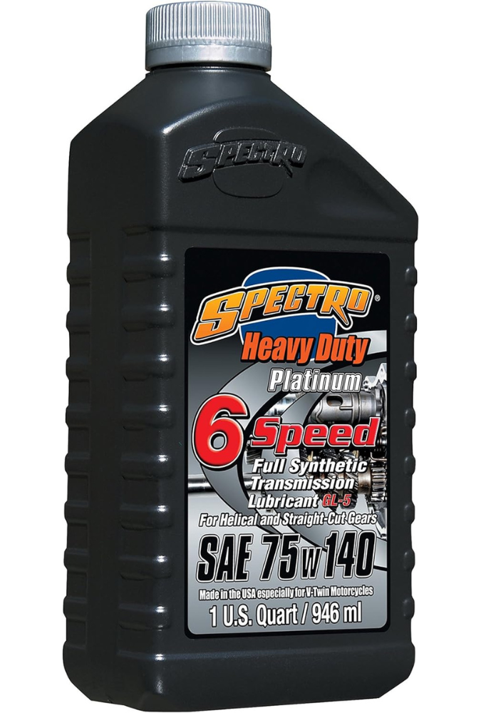 Discover the perfect solution for Harley owners with noisy 6-speed transmissions. Our unique lubricant ensures smoother shifting and reduces fifth gear whine while eliminating clunks for a quiet, enjoyable ride. Featuring Spectro's G4 Technology, this high-performance formula boasts special additives for superior anti-wear protection and increased film strength. Enjoy reduced drag and extended gear life, even under high loads and extreme heat. This premium motorcycle lubricant is A.P.I. GL-5 rated, dyed red, and exceeds all OEM and Harley Davidson warranty requirements. Experience the ultimate ride with our Harley transmission lubricant today!