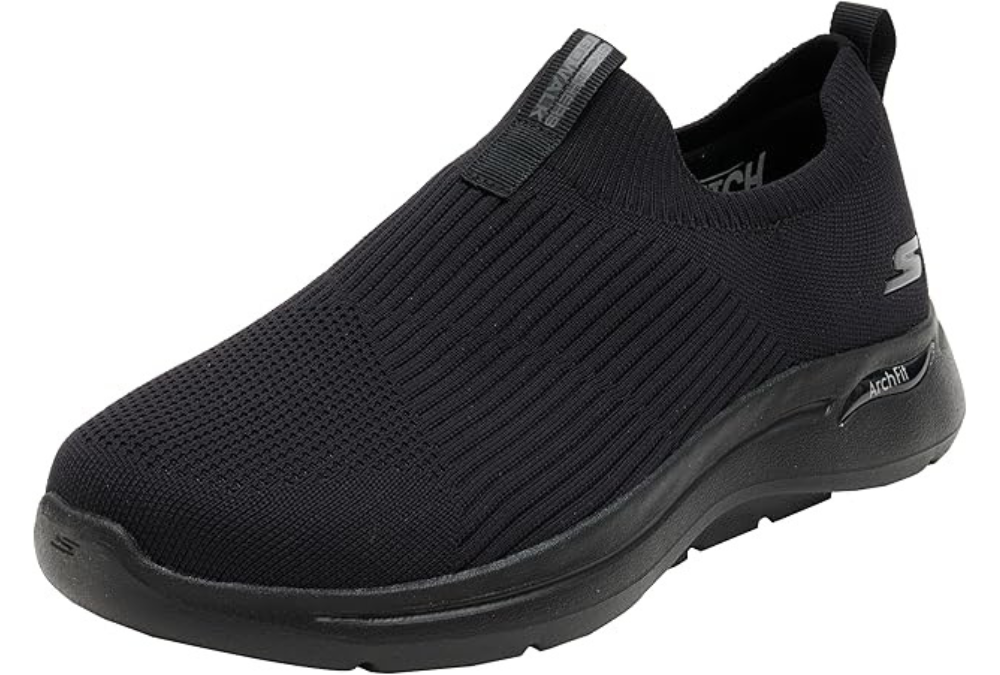 - SKECHERS GO WALK: keep up the pace in enhanced comfort and stability with the Skechers Go Walk Arch Fit sneaker; just slip-on and go