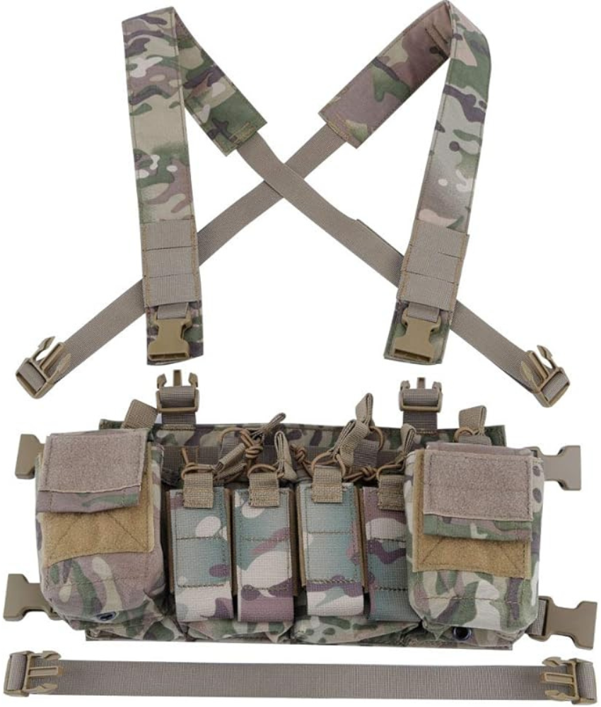 Tactical Chest Vest Rig Adjustable X Harness with 5.56 9mm Rifle Mag Pouches for Airsoft Shooting Wargame Paintball