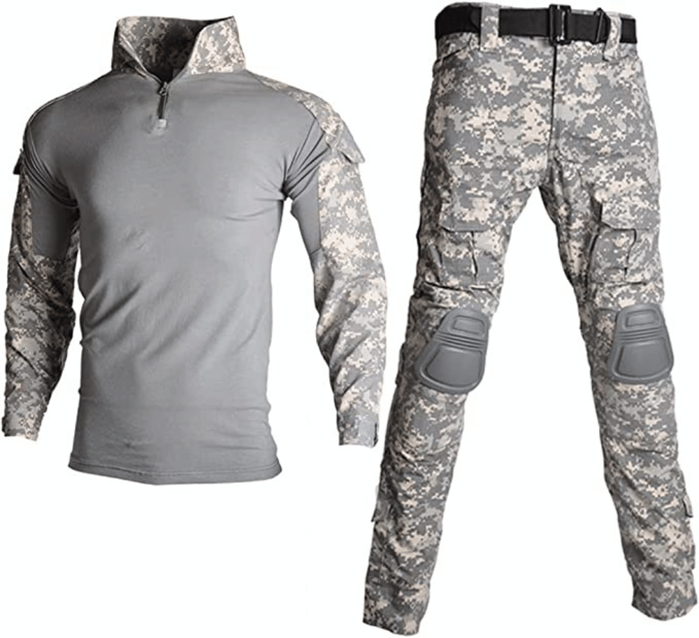 - Survival and tactical apparel gear are suitable for Airsoft, Survival, Shooting, Milsim, Wargame, Airsoft, Paintball, Hunting, Fishing, Army Training, Adventure Travel, SWAT.Package: shirt & pants, 1 pair of pads.