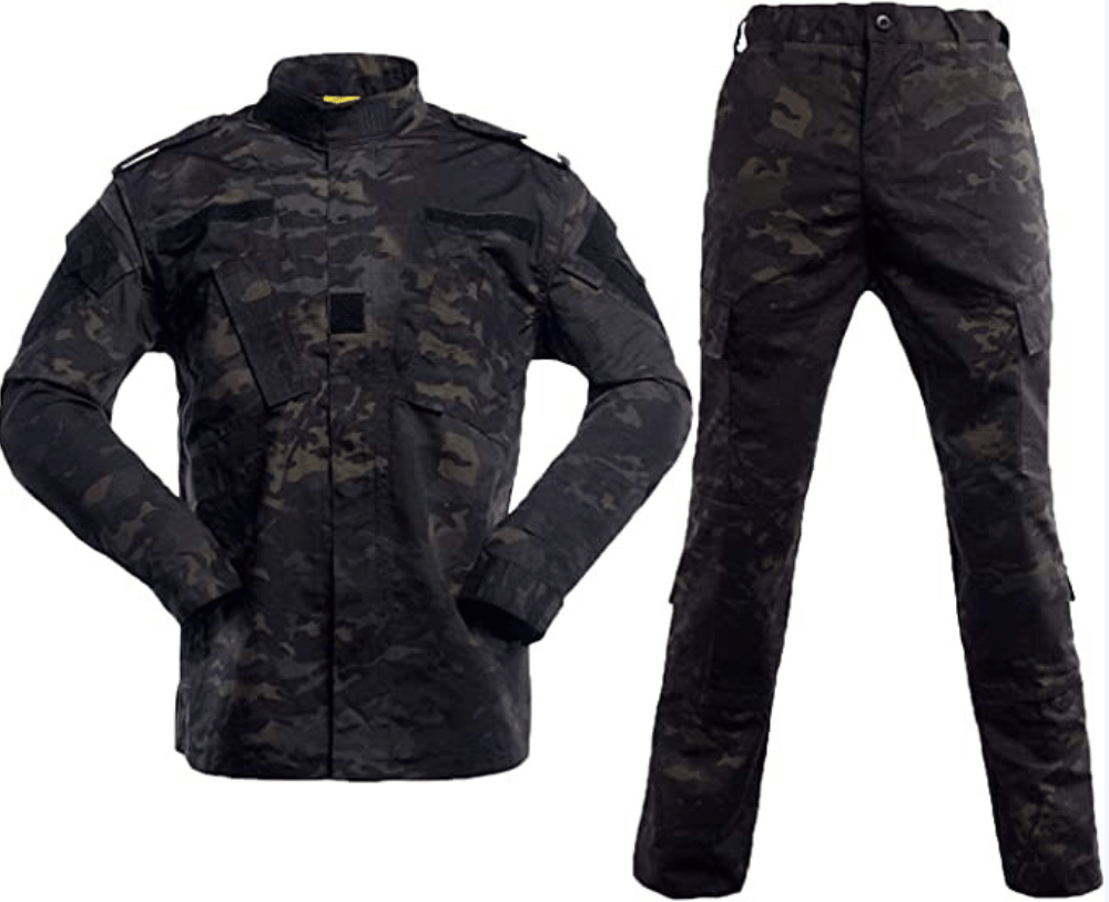 - Functional Pocket Design: Army uniform for men have plenty of pockets for knives, pens, spare magazines and the list goes on. Tactical Jacket: 2 velcro chest pockets, 2 velcro arm pockets, 2 velcro small pen pockets, hook and loop closure. Tactical Pants: 2 velcro slant pockets, 2 velcro cargo pockets with elastic drawstring for keeping stuffs secures, 2 velcro small leg pockets, 2 buttons back pockets.