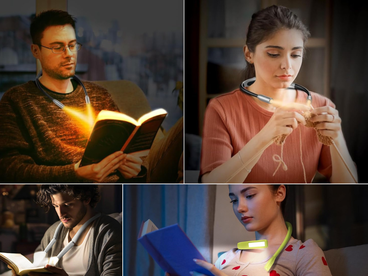 Experience the convenience of neck lights for hands-free tasks. Lightweight, portable, and easy to use—perfect for planes, trains, and more