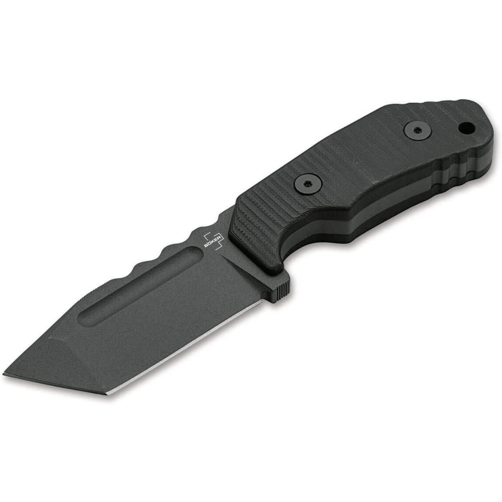 Boker Plus Little Dvalin Fixed Blade EDC Knife, G10 Handles Black Coated D2 Steel with Black Kydex Sheath, Designed by Dirk Hofmeister