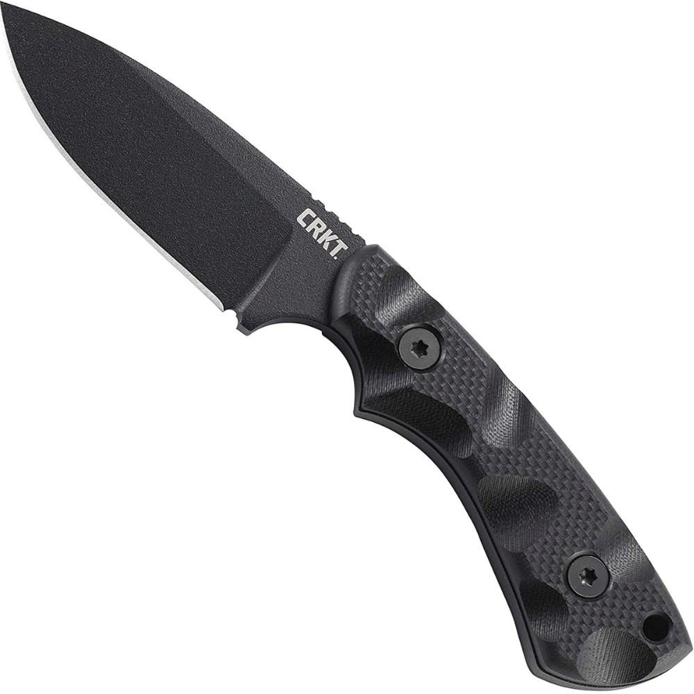 CRKT SIWI Fixed Blade Knife: Compact and Lightweight Black Knife with Carbon Steel, Plain Edge Blade, G10 Handle, and Glass Reinforced Nylon Sheath Case
