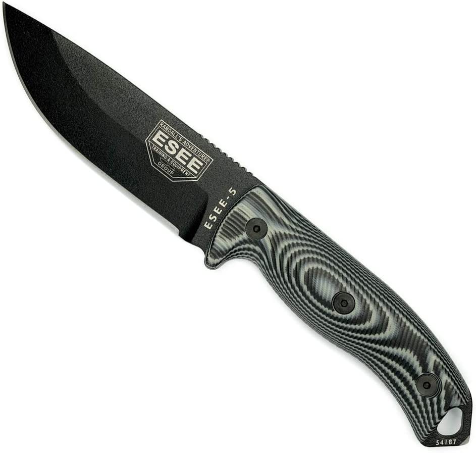 ESEE-5 Fixed Blade Knife, 3D Contoured Handle, 1095 Carbon Steel, Ambidextrous Kydex Sheath