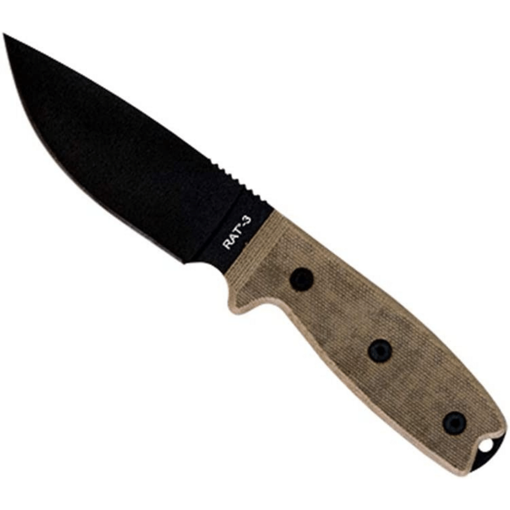 Ontario Knife Company, Rat-3, Fixed 3.69" Blade with Leather Sheath