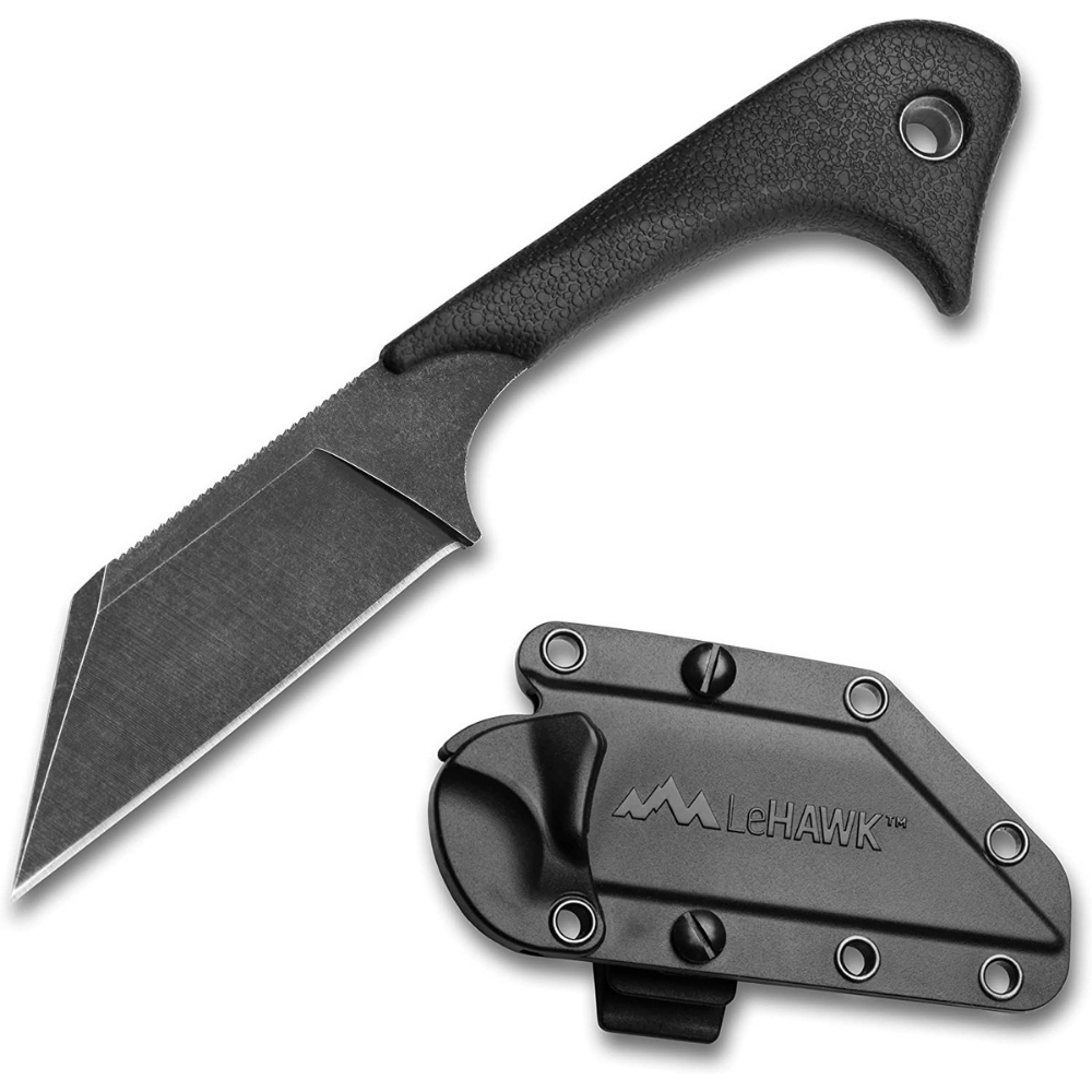 Outdoor Edge LeHawk - Tactical Outdoor Utility Knife with Blackstone Finished Blade, Rubberized TPR Handle, Multi-Carry Sheath System with Detachable Rotating Clip - MOLLE Compatible