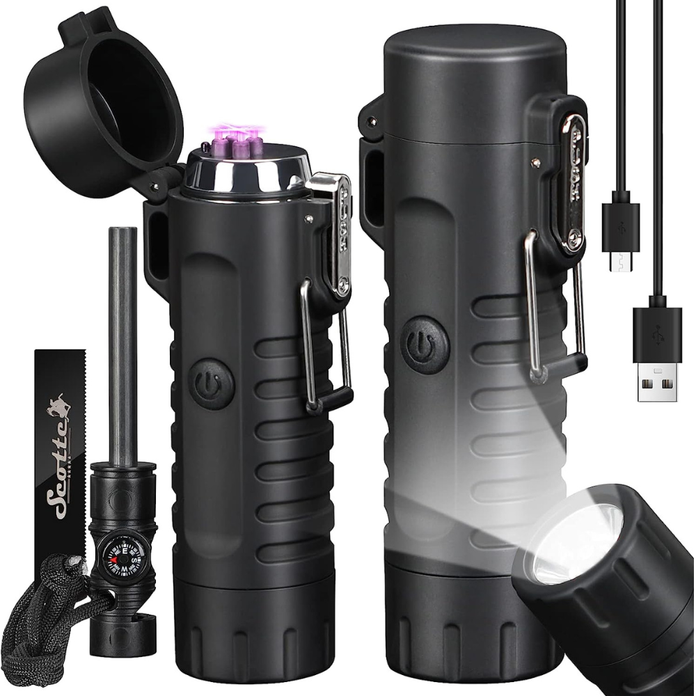 Scotte Plasma Windproof arc Lighter Electric Lighter and LED Flashlight