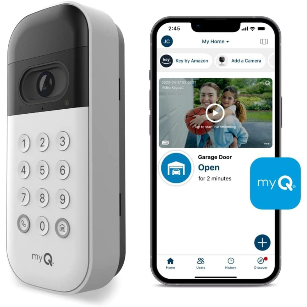 LiftMaster VKP1-LM myQ Video Keypad with Camera, WiFi, and Smartphone Control. A Smart Garage keypad for Your Smart Home. Works with Chamberlain, LiftMaster, and Craftsman openers.