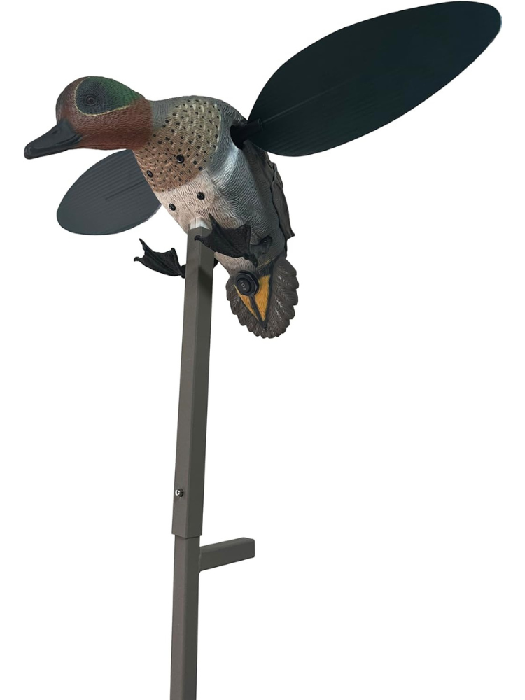 - Super-Fast Spinning Wings: Ducks respond better to faster wing speeds, making this decoy effective for green-wing teal and various other waterfowl species; magnetically connected wings provide quick installation and a more natural, lifelike motion