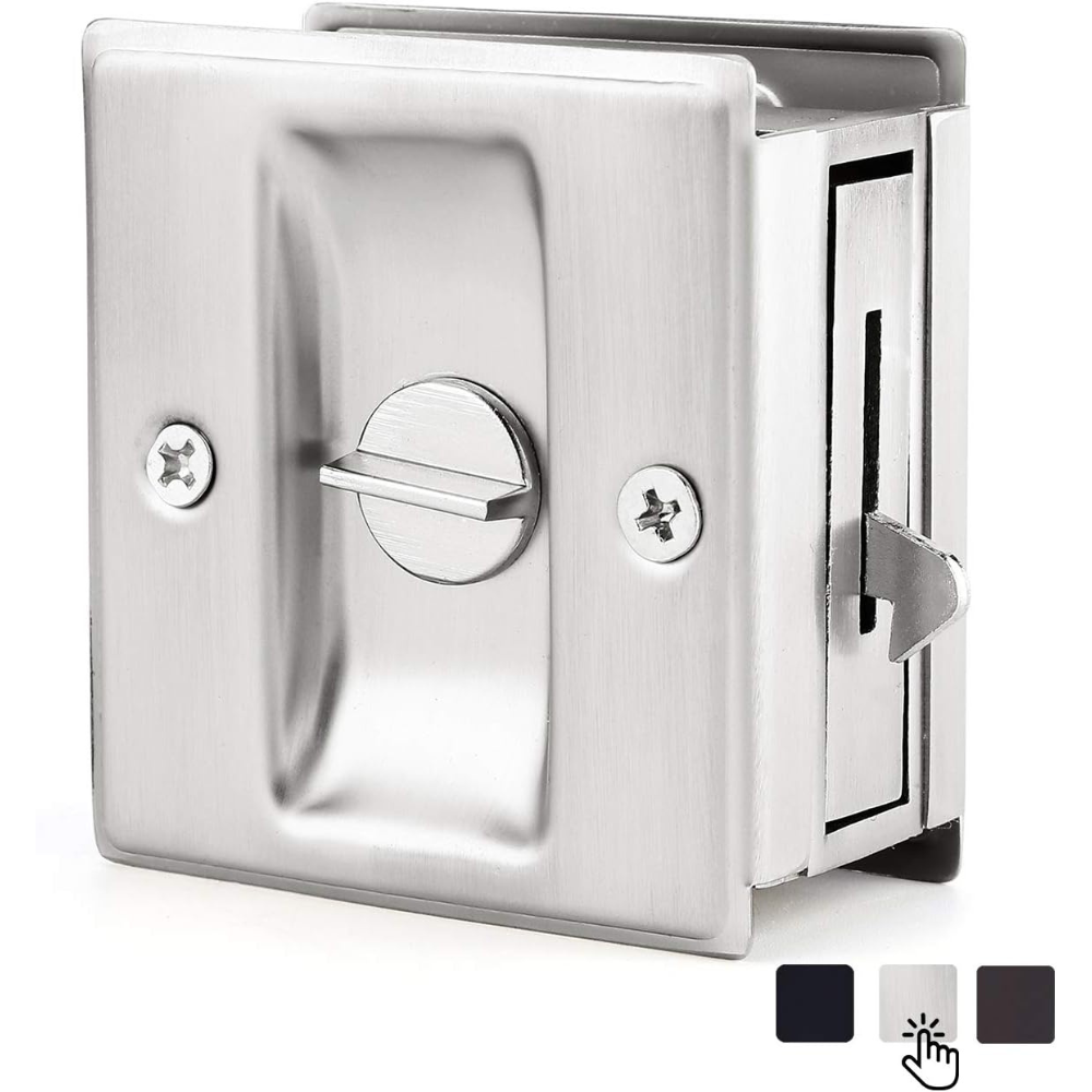 Privacy Pocket Door Lock Hardware with Pull - Replace Old Or Damaged Sliding Door Locks Quickly and Easily, 2-3/4”x2-1/2”, for 1-3/8” Thickness Door, Brushed Nickel