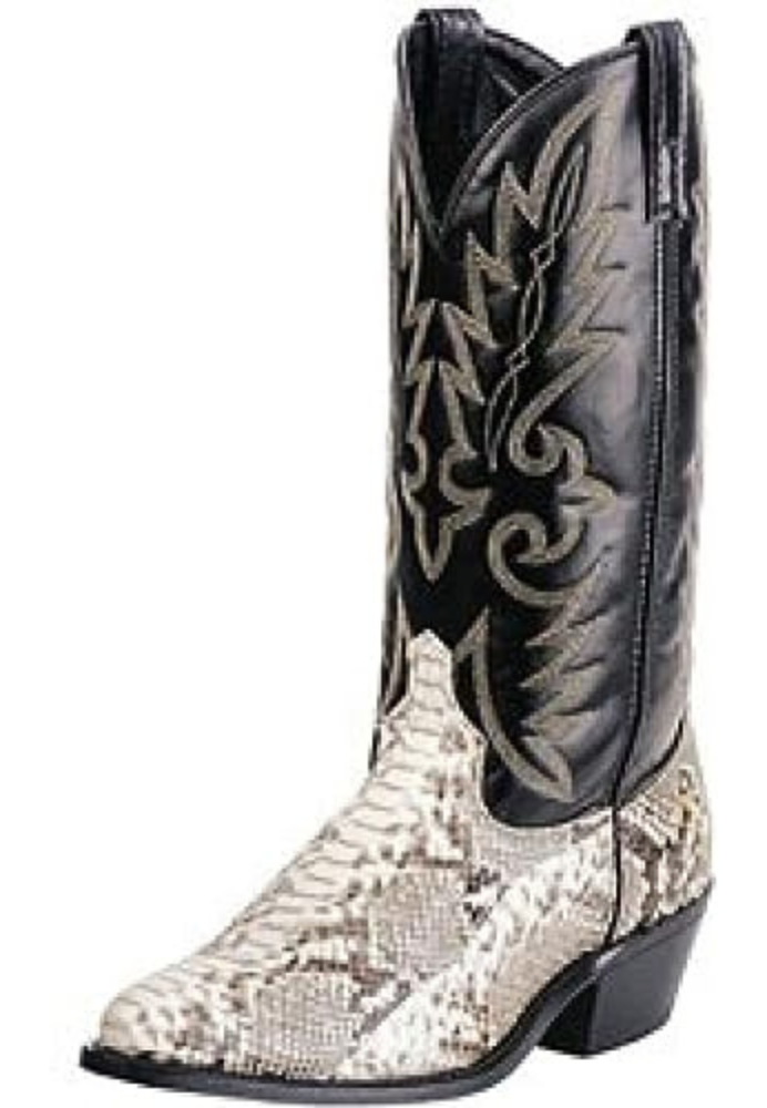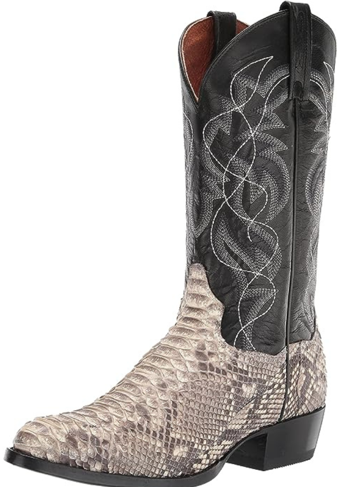 The Laredo Mens Key West Western Boot is a distinguished choice among the mens snakeskin boots. It features a unique blend of natural python leather foot and a 12-inch black leather top that gives it an impressive and attention-grabbing look. This boot is designed with an attractive Western style that combines both traditional and modern aesthetics, making it suitable for all kinds of attire and occasions.