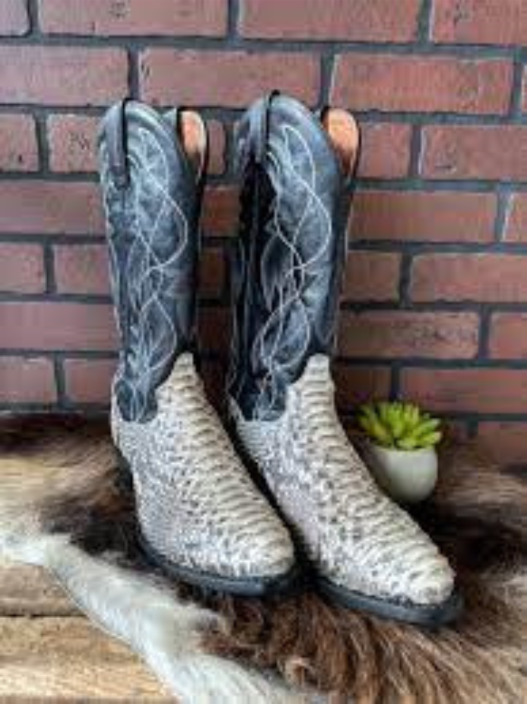 Experience the unparalleled style of the Men's back cut Python Q818, proudly crafted in the USA by Cowtown Boots. This exquisite boot features a genuine python skin foot, elevating its exotic allure. Adorned with intricate handcrafted stitching and a leather top, it exudes a sense of luxury.
